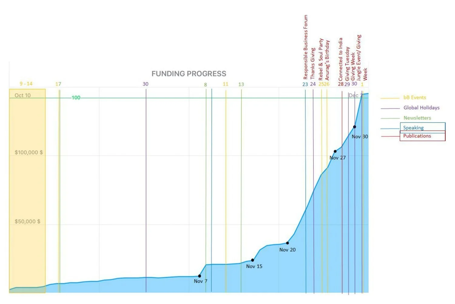 Throughout the 50 days of the campaign, we stuck by it, we didn’t give up, we kept a positive attitude and applied numerous fall back strategies. These fall back strategies showed results, and we miraculously reached our goal with few hours to spare. See the image which reflects how nervous we were for the large part of the campaign and how breathtakingly exciting it was towards the end. Failure was never an option.