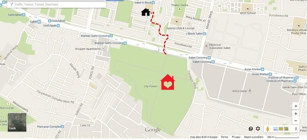 My home in Delhi (illustration on google map by author)